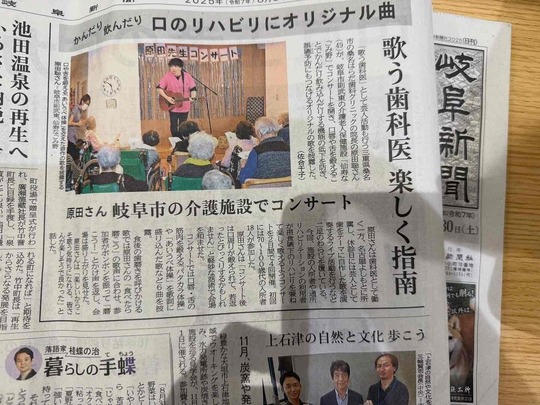 記事では、「音楽で伝える口腔ケアの大切さ」「歌で嚥下を支える歯科医師」として紹介され、多くの反響をいただきました。